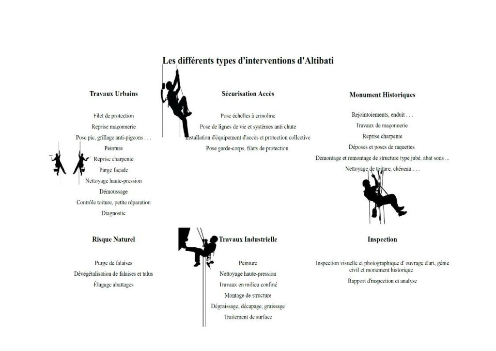 Altibati a pour cadre d’activité la réalisation de chantiers de charpente, maçonnerie ainsi que divers travaux d’accès difficile ou travaux sur cordes.